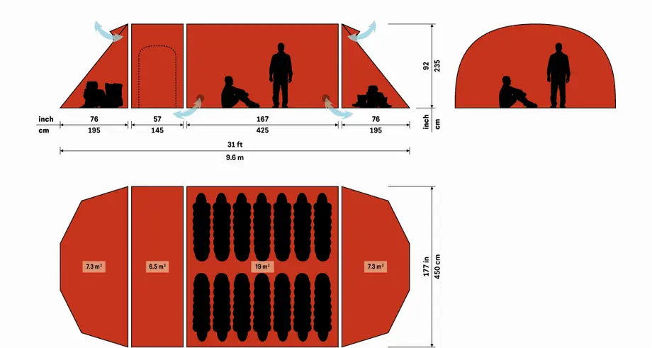 - ✅ Flexibel konfigurierbar: Optionales Innenzelt mit 14 Schlafplätzen