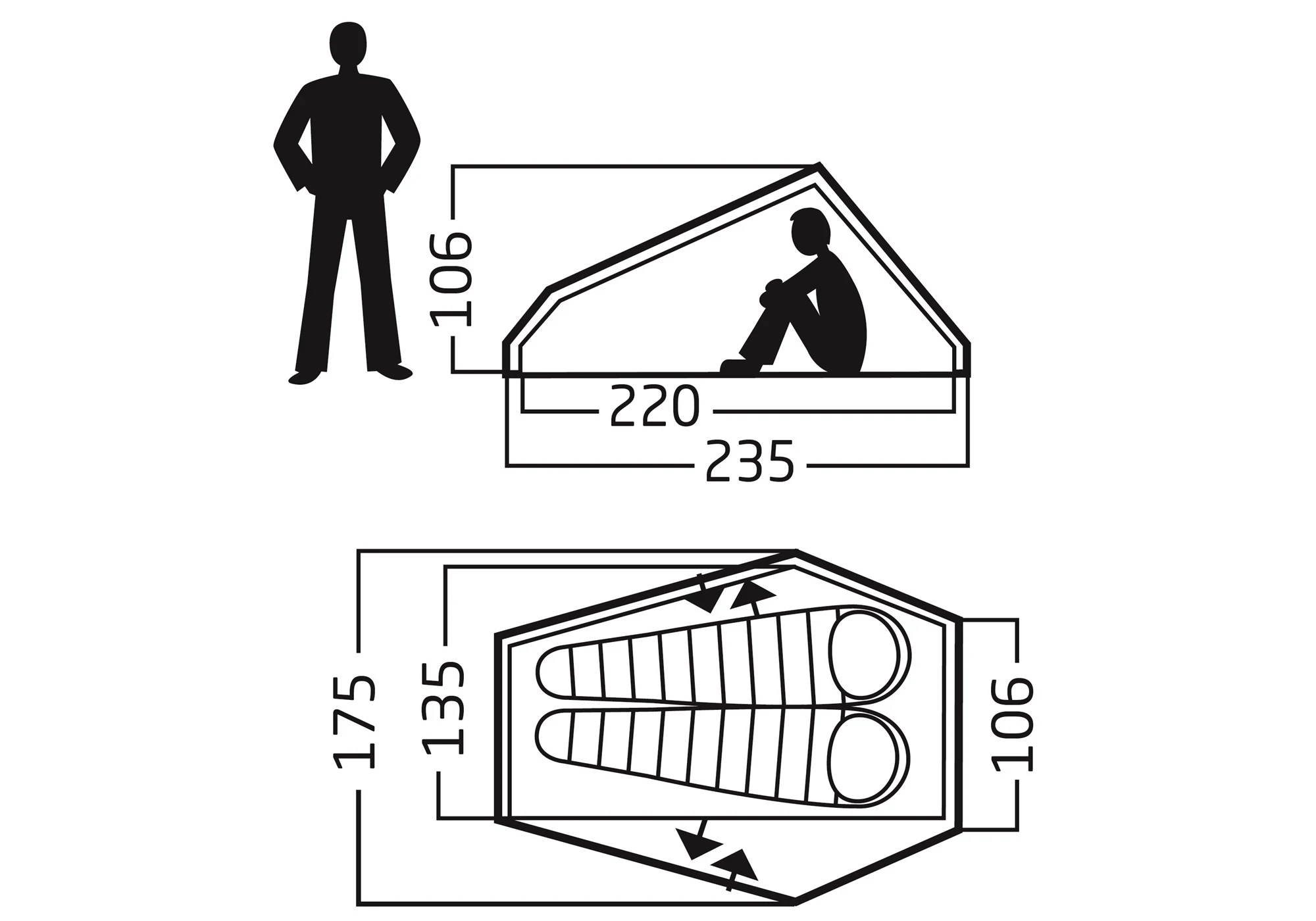 Hinweis: Dank der neuen, gewichtsoptimierten Beschläge und verstärkten Abspannpunkte kombiniert das Telemark 2.2 LW (2.0) minimales Gewicht mit hoher Wetterfestigkeit – perfekt für schnelle Solotouren oder leichte Zweiertrips.