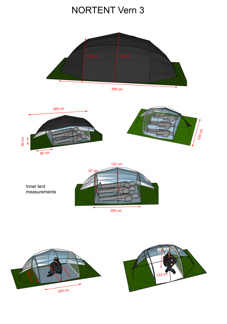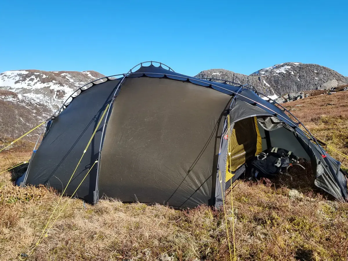 Mit seinem großzügigen Raumkonzept bietet das Vern 3 ausreichend Platz für 3 Personen samt Ausrüstung und Kochbereich, und bei Bedarf können sogar 4 Personen darin übernachten.
