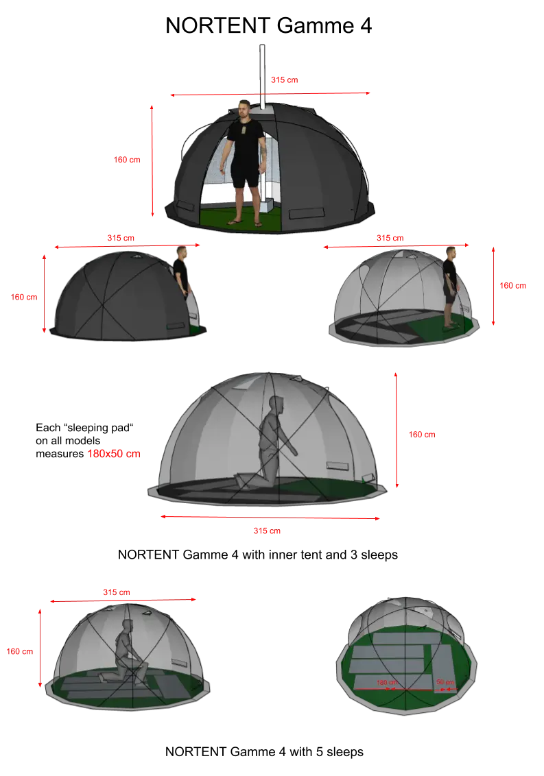 Das NORTENT Gamme 4 ist ein wahres Outdoor-Zuhause für Entdecker. Es bietet Schutz, Komfort und Stabilität für die unterschiedlichsten Abenteuer – von arktischen Expeditionen bis hin zu sommerlichen Trekkingtouren.